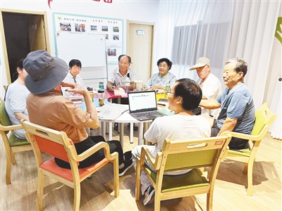 為什么要在一起讀書(shū)?“我們就住在附近。雖然退休了,但大家一致認(rèn)為要堅(jiān)持學(xué)習(xí),跟上時(shí)代步伐。我們經(jīng)常聚在一起讀書(shū),不僅學(xué)習(xí)中華優(yōu)秀傳統(tǒng)文化,還集體閱讀時(shí)事新聞、保健知識(shí)、生活常識(shí)等方面的內(nèi)容,并交流心得、分享體會(huì)。”82歲的王浩山說(shuō),后來(lái),他們就把讀書(shū)會(huì)固定到每周二、周五下午3點(diǎn)至5點(diǎn)舉辦,自愿參加。讀書(shū)會(huì)多則七八人、少則四五人,氛圍很好。