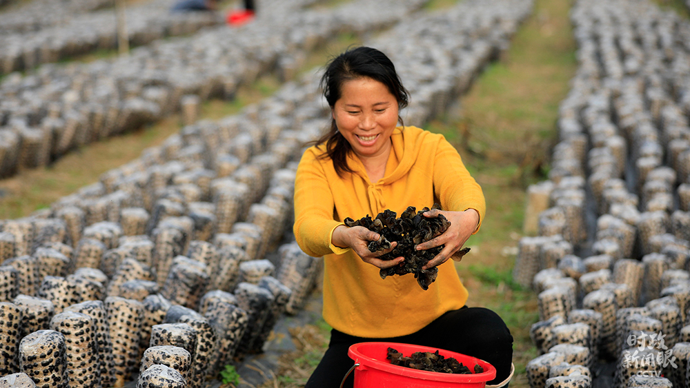 △2021年2月,貴州從江縣貫洞村木耳扶貧基地,村民展示剛采摘的木耳。