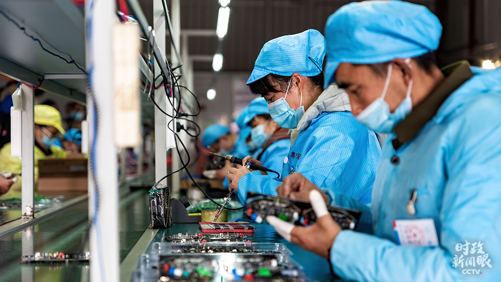 △2021年3月,安徽肥東縣古城鎮(zhèn)就業(yè)扶貧車間內(nèi),工人正在焊接電路板。
