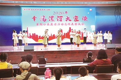 8月22日上午9時(shí)許,在許慎文化園會(huì)議大廳里,孩子們誦讀經(jīng)典的聲音此起彼伏。當(dāng)天上午,為期42天的“幸福漯河大家讀”——2020暑期公益晨讀活動(dòng)正式落下帷幕。今年晨讀活動(dòng)范圍更廣,人數(shù)更多,家長(zhǎng)和孩子踴躍參與,引來眾多關(guān)注的目光,也必將對(duì)少年兒童的成長(zhǎng)產(chǎn)生廣泛、深遠(yuǎn)、積極影響。