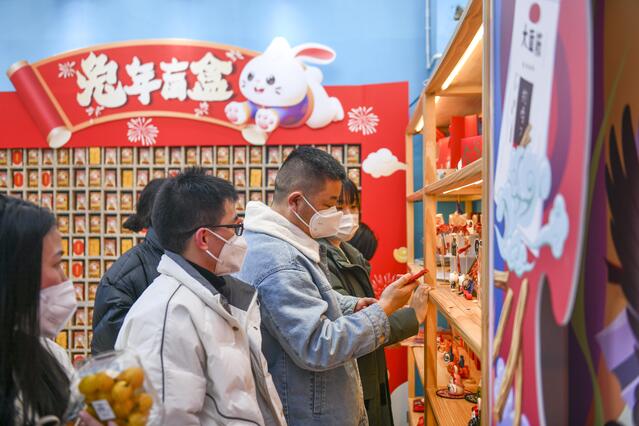 在漯河禮物展館內(nèi),兔年盲盒板塊和以兔為主題的掛歷、冰箱貼、手機(jī)掛件、小擺件等新年系列產(chǎn)品顯得格外喜慶。“由可愛的小兔子衍生的文創(chuàng)產(chǎn)品,更容易打動(dòng)消費(fèi)者。”該展臺(tái)負(fù)責(zé)人說。