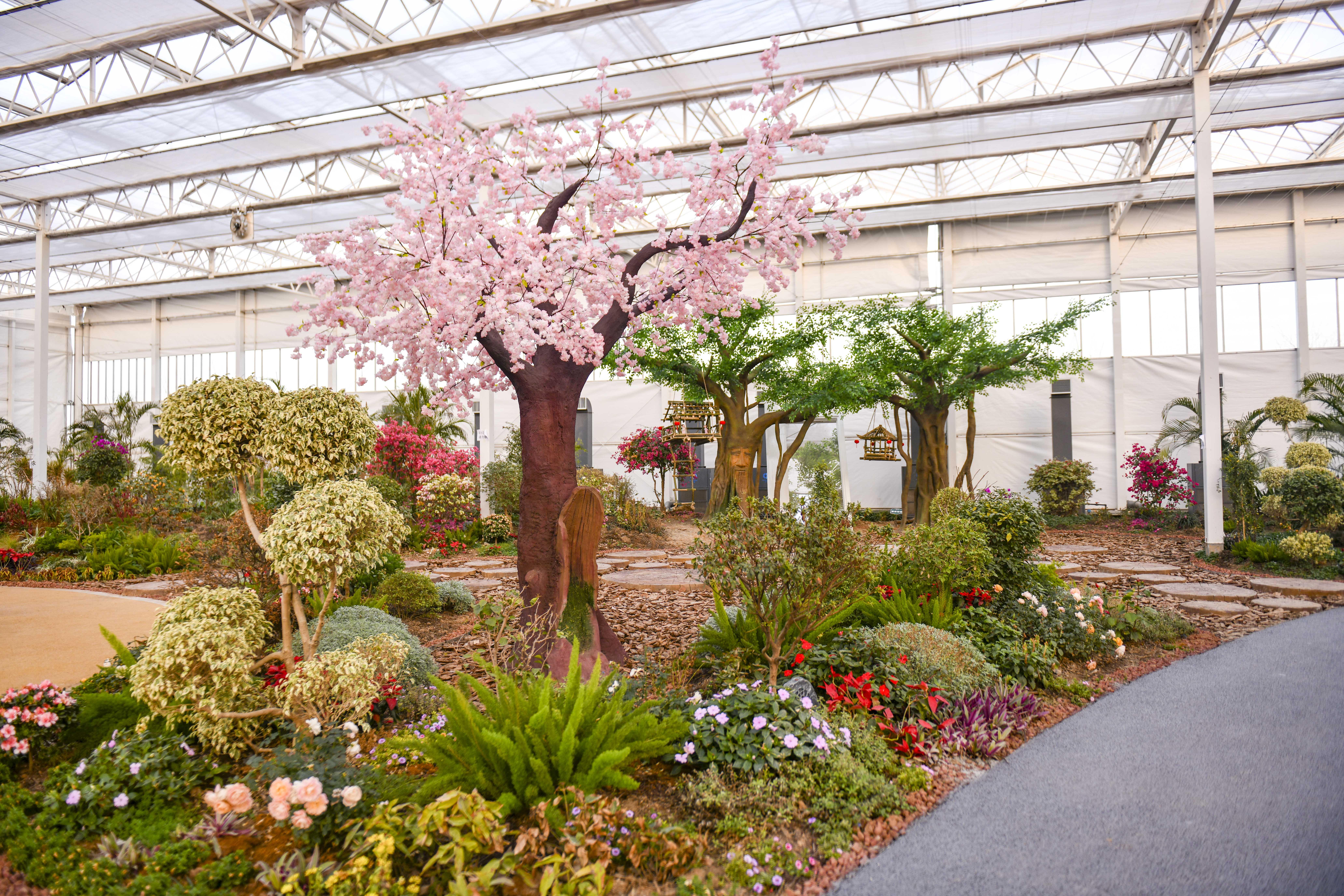 由一品紅、繡球花等打造而成春意盎然的春之舞花瀑;利用風(fēng)車造型Logo、竹船、紫色鼠尾草等讓人暢游在紫色海洋中的風(fēng)車花園、由藍(lán)黃相間的花朵打造而成的星空花境、由魔法樹和時(shí)空門打造穿越時(shí)空的時(shí)空花境……在工作人員的帶領(lǐng)下,記者依次進(jìn)入了不同的花境,每個(gè)花境都是一個(gè)不同主題和氛圍的花鏡景觀,令人眼花繚亂、應(yīng)接不暇。“在科普課堂,我們還種植了五感植物,比如捕蠅草、迷迭香、咖啡樹等,能讓孩子們更好地了解植物,觸發(fā)學(xué)習(xí)興趣。在百花幽谷,春節(jié)期間會(huì)有麗人行、魔術(shù)等節(jié)目。”李佳佳告訴記者。