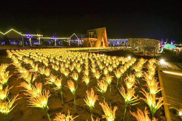 隨著夜幕降臨,園區(qū)內(nèi)開啟了夜景燈光秀,到處燈光璀璨、流光溢彩,處處洋溢著歡樂、喜慶的節(jié)日氣氛,呈現(xiàn)出一番別樣的美感,令人流連忘返。采訪中,記者看到進(jìn)入園區(qū)的游客不時(shí)拍照、留念。“不管是環(huán)境還是設(shè)施都不錯(cuò),孩子們玩得很開心,不愿意走。”正在兔子造型展板前給孩子拍照的邢貝貝說,她家在臨潁縣皇帝廟鄉(xiāng)商橋村,聽說園區(qū)即將開門迎客,她迫不及待地前來游玩。春節(jié)期間,她準(zhǔn)備約著親朋,帶著孩子們?cè)賮硗妗?/span>