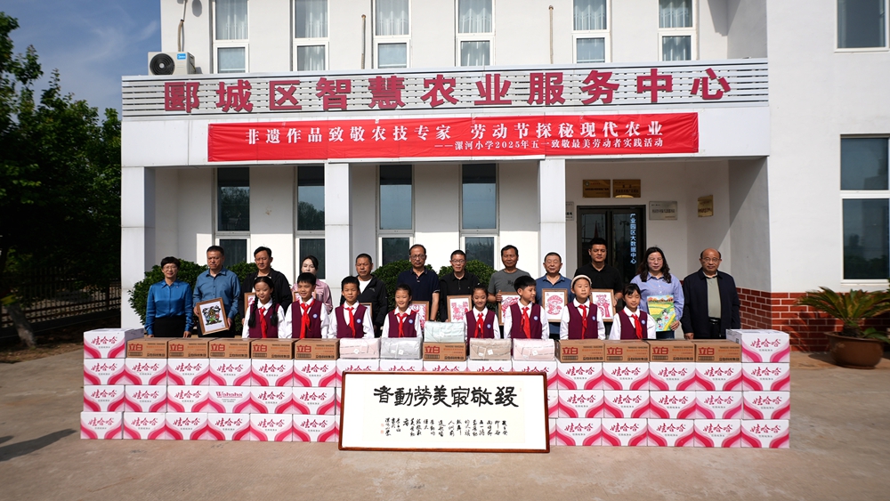 活動(dòng)伊始,漯河小學(xué)學(xué)生代表王彬宇、王鈺萱、田景銳、夏華苒深情朗誦獻(xiàn)詞《致敬農(nóng)技專家》。隨后,少先隊(duì)員們將精心準(zhǔn)備的剪紙、書法、繪畫等非遺作品贈(zèng)予農(nóng)技專家,以表達(dá)對這些“大地追夢人”的崇高敬意。隨后,漯河市郾城區(qū)農(nóng)業(yè)農(nóng)村局黨組書記、局長張韶杰等領(lǐng)導(dǎo)及農(nóng)業(yè)科學(xué)家團(tuán)隊(duì)代表登臺(tái),接受這份滿含童真與感恩的心意,并與少先隊(duì)員們合影留念。