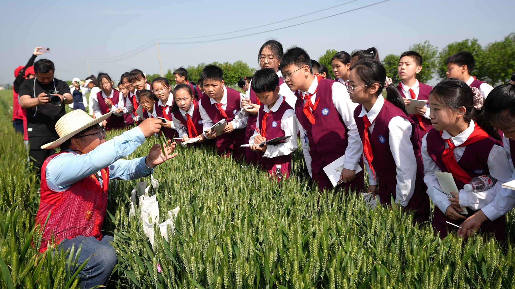 儀式環(huán)節(jié)結(jié)束后,專家為同學(xué)們帶來了精彩講解,深入淺出地科普了小麥的一生、小麥的雜交及品種選育、人工影響天氣作業(yè)、病蟲害物聯(lián)網(wǎng)等知識,揭開現(xiàn)代農(nóng)業(yè)神秘面紗。同學(xué)們認(rèn)真聆聽,不時(shí)記錄下重點(diǎn)內(nèi)容。