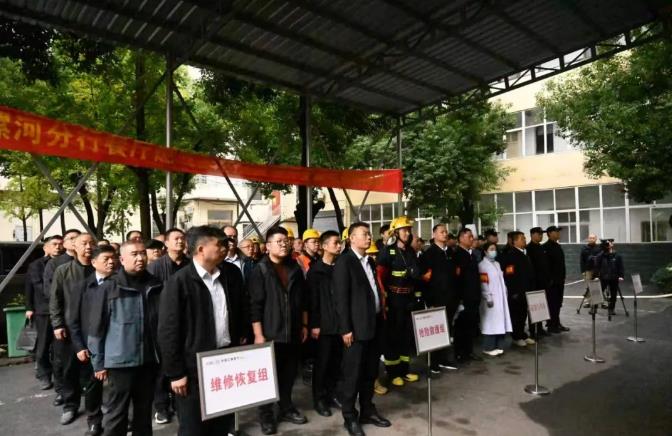 接到報告后,安保負責人陳鵬成立即啟動應急預案,向主管行長張富財報告并請求支援,同時向省行保衛(wèi)部匯報。分行黨員消防應急突擊隊聞令而動,各小組火速集結,趕赴現(xiàn)場。