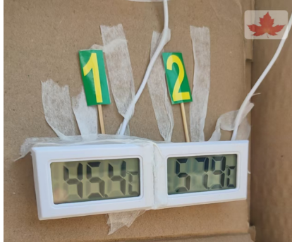 夏浩桐同學(xué)告訴記者:“去年秋天,我們觀賞紅楓葉時,偶然發(fā)現(xiàn)路兩側(cè)的五角楓樹干出現(xiàn)了蛻皮壞死現(xiàn)象。寒假期間,我們又對整條路的五角楓進行了全面觀察和統(tǒng)計,發(fā)現(xiàn)壞死率竟然超過了65%。于是,我們就這個現(xiàn)象與學(xué)校張真老師進行了討論。張老師非常支持,很快便成立了由她和我們四位學(xué)生組成的‘五角楓實驗小組’。”“我們小組多次實地調(diào)查、現(xiàn)場測試后發(fā)現(xiàn),在夏季太陽直射下,五角楓樹皮西側(cè)和南側(cè)的溫度差異巨大。比如現(xiàn)在下午3點,我們測得南側(cè)(1號線)電子測溫計顯示45.4℃,而西側(cè)(2號線)測溫計則顯示高達57.9℃,兩側(cè)溫差達到了12.5℃。”夏浩桐繼續(xù)說道,“我們小組經(jīng)過多次測試、記錄數(shù)據(jù),并查閱了大量資料,還借助了‘豆包’等AI工具進行分析,最終發(fā)現(xiàn)了一些資料提到了‘日灼病’,即因太陽輻射溫度過高而導(dǎo)致的植物曬傷。我們認(rèn)為,這里的五角楓很可能就是患上了日灼病。”