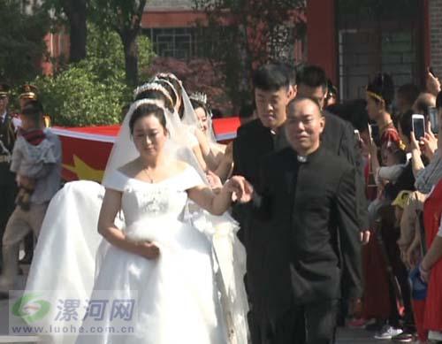 五一假日期間,漯河市第十屆青年集體婚禮在市區(qū)沙澧河畔舉行。12對新人在親朋好友和市民們的見證下,一同許下愛的誓言,踏上幸??鞓返男律?。
