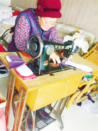 黃景蓮家里有兩臺縫紉機,一臺是她自己的,另一臺是她女兒結(jié)婚時買給女兒的陪嫁。黃景蓮笑著告訴記者,她女兒對手工活并不怎么熱乎,一直都是她在使用。