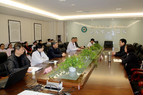 市二院胡洪良院長代表醫(yī)院對專家們的到來表示歡迎,同時也對醫(yī)院承擔漯河市兒童醫(yī)學 中心建設情況進行了介紹,并對中心建設中在醫(yī)教研等方面發(fā)展需要解決的問題進行了分 析,希望能借助河南省兒童醫(yī)院的專家、技術、教學、科研等資源,提升市二院兒科醫(yī)療 服務水平及學科建設水平。副院長郭長根對醫(yī)院兒科現(xiàn)狀及發(fā)展規(guī)劃進行了匯報。河南省 兒童醫(yī)院內(nèi)科大主任金志鵬對該院門診及住院環(huán)境改善和兒科現(xiàn)有成就給予了充分肯定, 并表示河南省兒童醫(yī)院將與該院兒科進行深度合作:除了派駐專家進行指導外,還將在人 才培養(yǎng)、學科建設、學術交流、遠程醫(yī)療、雙向轉診等方面拿出多項舉措,切實提升該院 兒科整體水平,為漯河乃至周邊地區(qū)兒童提供較為全面的優(yōu)質醫(yī)療服務。
