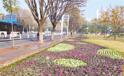 “為營造四季有花的城市綠化環(huán)境,市城管局園林處每年都要引進100余萬盆花草,分別于4月中旬、7月中旬、9月下旬、11月下旬進行栽植。”市城管局園林處相關責任人告訴記者,結合花草季節(jié)生長特點,選擇適應性強、花期長、耐高溫、耐嚴寒,具有極高觀賞性的一串紅、國慶菊、雞冠花、孔雀草、垂吊牽牛、萬壽菊、羽衣甘藍等栽植。今年又引進了7萬余株角堇,進行實驗性栽種,經(jīng)過一個冬季,檢驗其是否適應我市的氣候,為下一步推廣奠定基礎。