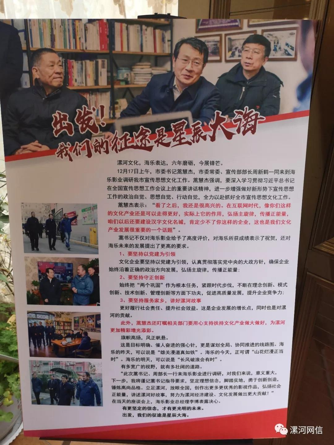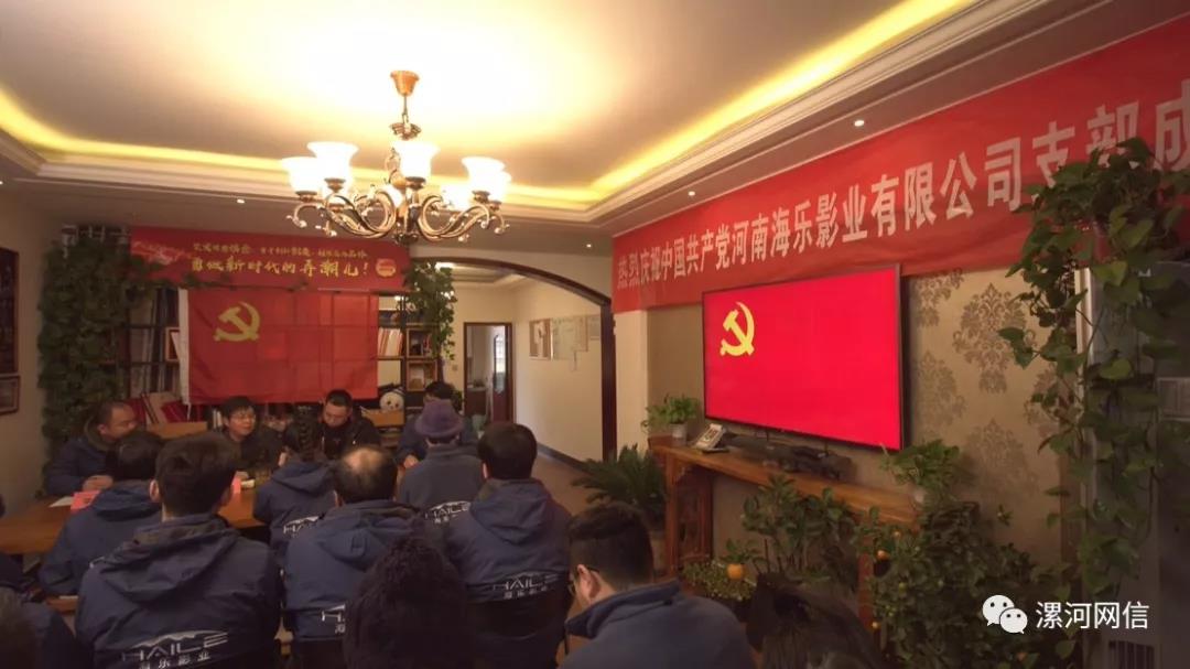河南海樂影業(yè)有限公司全體員工參加了成立大會,市互聯(lián)網(wǎng)行業(yè)黨委有關(guān)同志宣讀了《關(guān)于同意成立中國共產(chǎn)黨河南海樂影業(yè)有限公司支部的批復(fù)》,全體黨員重溫了入黨誓詞,公司黨支部書記陳揚、公司負責人李博分別做了表態(tài)發(fā)言。