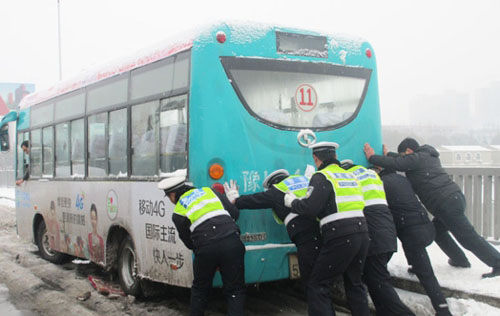 春節(jié)下雪期間 漯河交警一天內幫忙推車70多臺