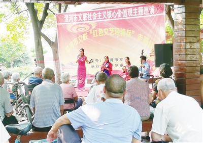 “目前,全市在省文聯(lián)文藝志愿者協(xié)會注冊的志愿者有500多人。”據(jù)市文聯(lián)相關負責人介紹,近年來,全市廣大文藝工作者積極加入文藝志愿者隊伍,多支不同類別、不同風格的文藝志愿服務小分隊,堅持文藝惠民、文藝為民、文藝樂民,將慰問演出、文藝培訓、文藝作品展覽展示送到基層,受到人民群眾的歡迎。