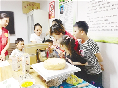 召陵區(qū)翟莊街道燕山路社區(qū)舉辦“歡樂(lè)慶六一”活動(dòng) 志愿者帶領(lǐng)孩子一起制作蛋糕