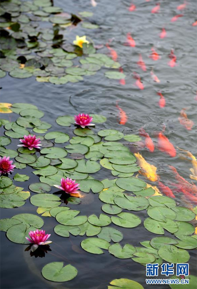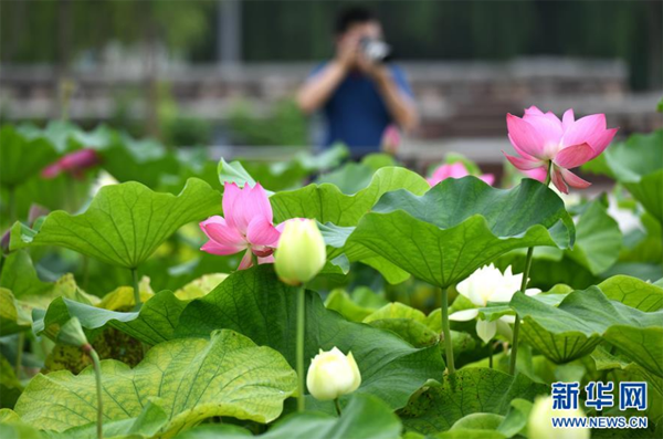 這是7月9日在位于石家莊市鹿泉區(qū)的龍泉湖濕地公園拍攝的荷塘景色。 位于河北省石家莊市鹿泉區(qū)的龍泉湖濕地公園,規(guī)劃面積5000余畝,是該市打造的較大規(guī)模城市濕地公園。近年來(lái),石家莊市以“城在景中、景在城中、見(jiàn)山見(jiàn)水”的發(fā)展理念,將多年堆積廢物的垃圾溝改造成為水清草綠的生態(tài)濕地公園。昔日垃圾場(chǎng)變身“天然氧吧”,成為市民觀光、休閑、健身的好去處。 新華社發(fā)(陳其保 攝)