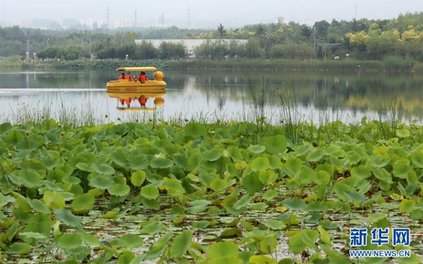 7月9日,在位于石家莊市鹿泉區(qū)的龍泉湖濕地公園,游客在湖內(nèi)劃船游玩。 位于河北省石家莊市鹿泉區(qū)的龍泉湖濕地公園,規(guī)劃面積5000余畝,是該市打造的較大規(guī)模城市濕地公園。近年來(lái),石家莊市以“城在景中、景在城中、見(jiàn)山見(jiàn)水”的發(fā)展理念,將多年堆積廢物的垃圾溝改造成為水清草綠的生態(tài)濕地公園。昔日垃圾場(chǎng)變身“天然氧吧”,成為市民觀光、休閑、健身的好去處。 新華社發(fā)(黑乃樂(lè) 攝)