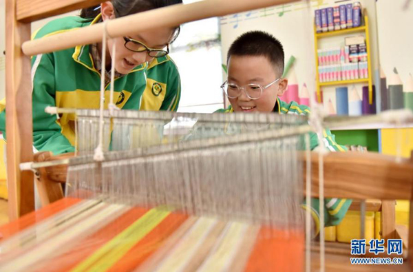 4月7日,威縣第四小學(xué)學(xué)生在體驗老粗布紡織技藝。近年來,河北省邢臺市威縣積極開展“非遺傳承進校園”活動,將當(dāng)?shù)靥厣沁z項目引入學(xué)校課堂,讓學(xué)生近距離感受民間傳統(tǒng)技藝的魅力,促進非遺文化的保護和傳承。新華社記者 朱旭東 攝