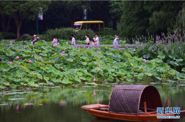 6月14日,游客在江蘇無錫太湖黿頭渚風景區(qū)游玩。