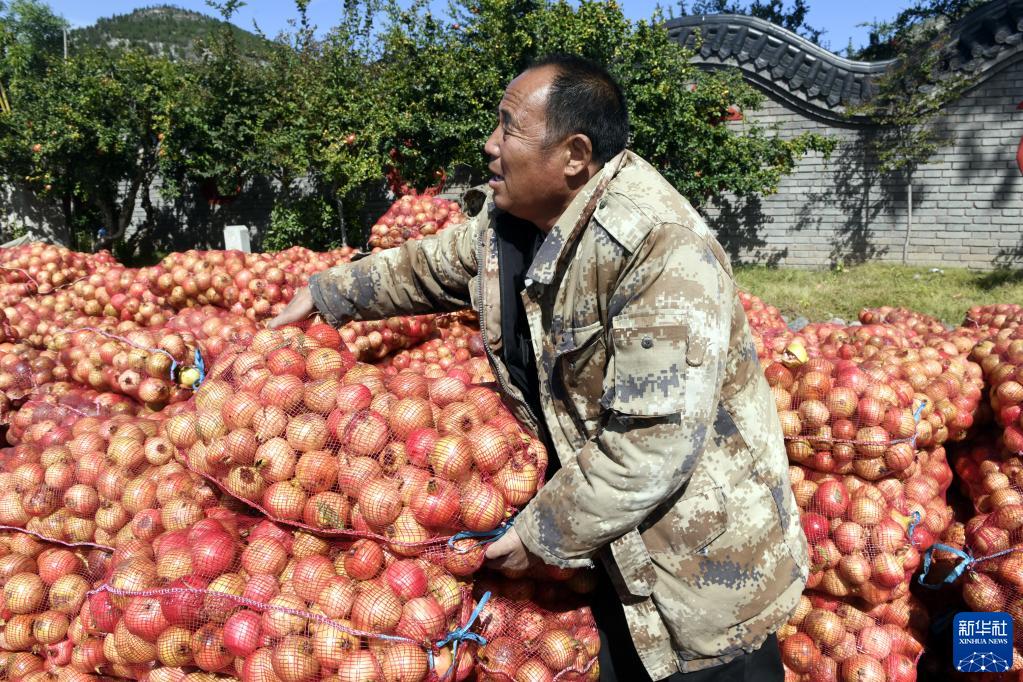 近日,山東省棗莊市嶧城區(qū)榴園鎮(zhèn)萬畝石榴園的石榴陸續(xù)成熟,村民們忙著采摘、交易。嶧城區(qū)有“中國石榴之鄉(xiāng)”美譽,全區(qū)石榴種植面積10余萬畝。