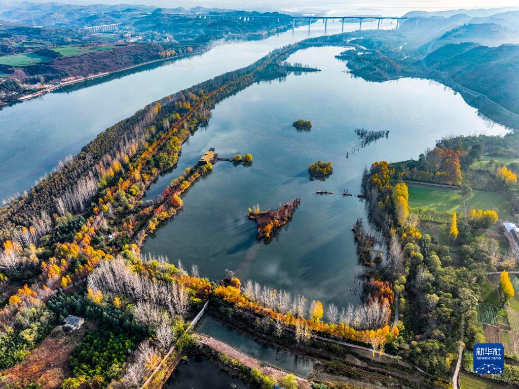 初冬時節(jié),河南黃河濕地國家級自然保護區(qū)濟源段五彩斑斕,美如畫卷。
