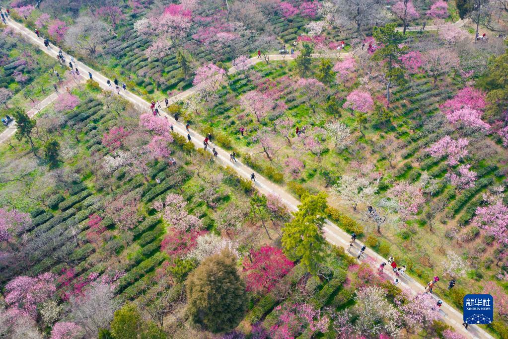 2月16日,游人在南京梅花山賞花(無人機(jī)照片)。
