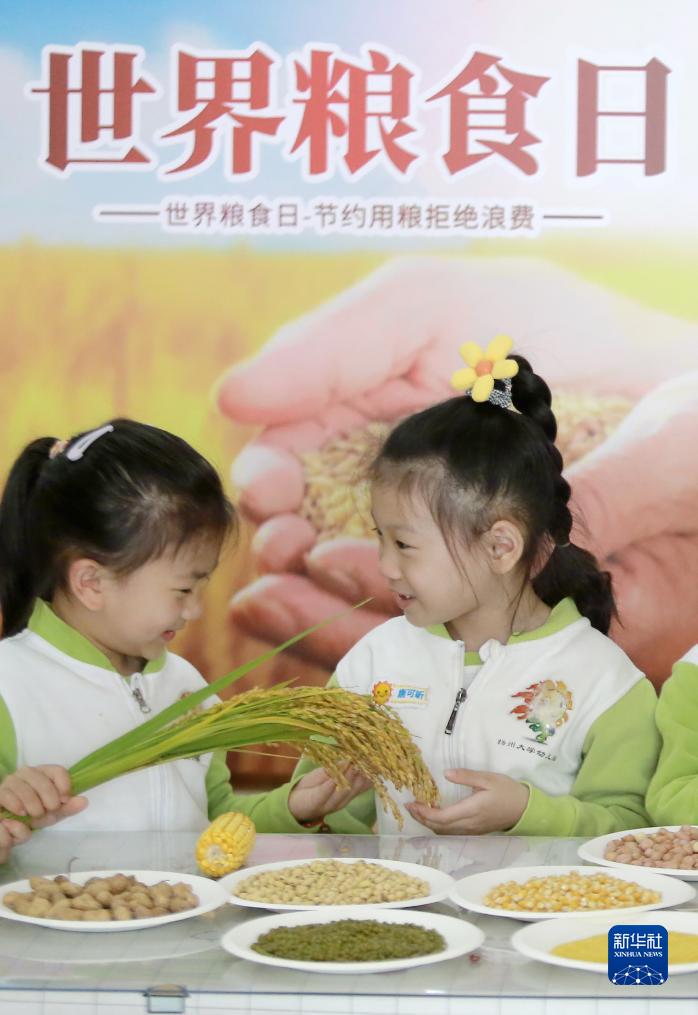 當(dāng)日是世界糧食日,各地幼兒園、小學(xué)、中學(xué)等開展豐富多彩的活動,讓少年兒童認(rèn)識糧食、體驗秋收,培養(yǎng)孩子們愛惜和節(jié)約糧食的意識。