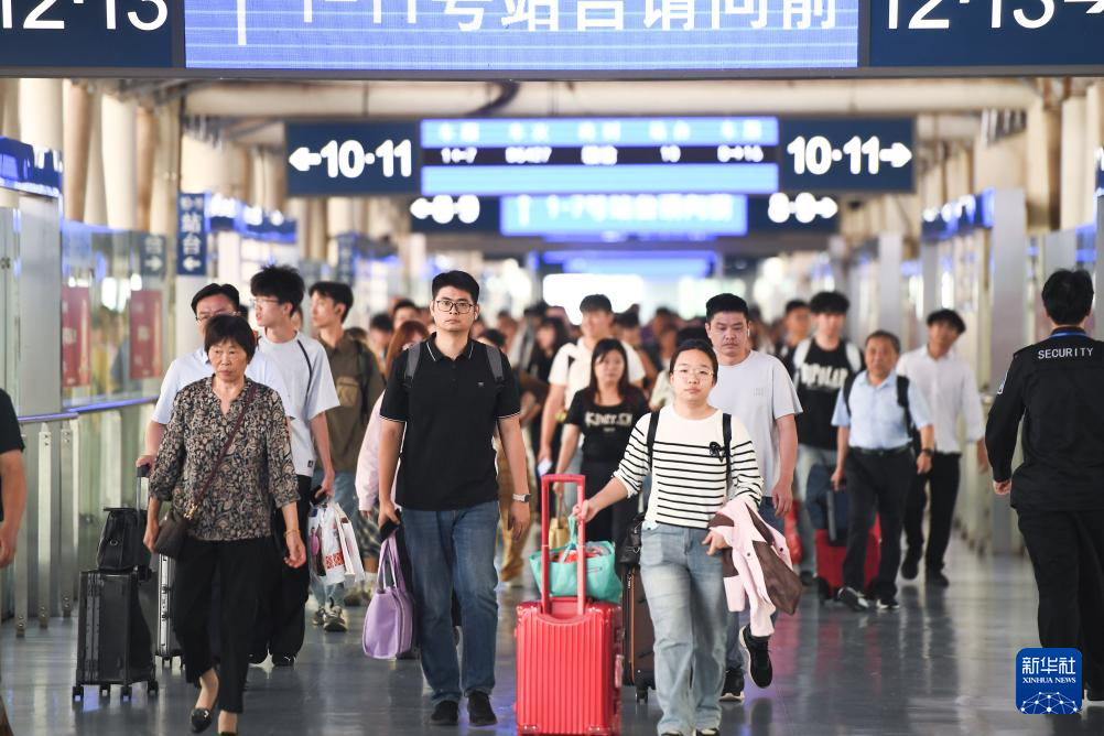 10月7日,旅客在江蘇無錫火車站準備乘車。